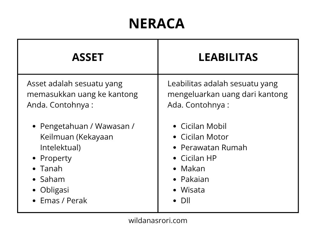 Sesimple itu memaknai Asset dan Leabilitas. Jika, kita menginginkan merdeka soal keuangan hal ini perlu kita pahami dengan baik. Supaya kelola keuangan kita bisa lebih teratur dan bijak dalam menempatkan setiap nominal uang yang keluar dari kantong kita. Lebih jelasnya saya buatkan gambar di bawah ini.