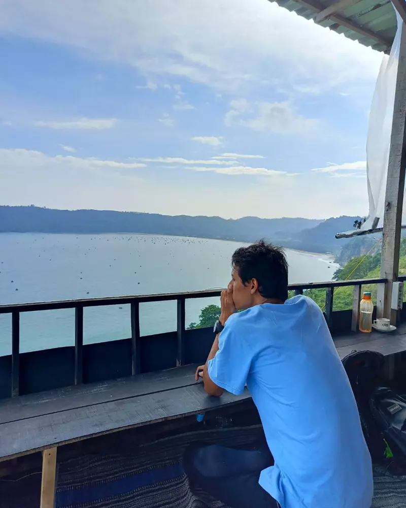 Banyak orang menikmati pemandangan alam dengan bercanda, merokok, atau makan besar bersama teman-teman. Namun saya justru memilih diam, memandang laut cukup lama, lalu menulis setiap detail yang saya rasakan saat itu.